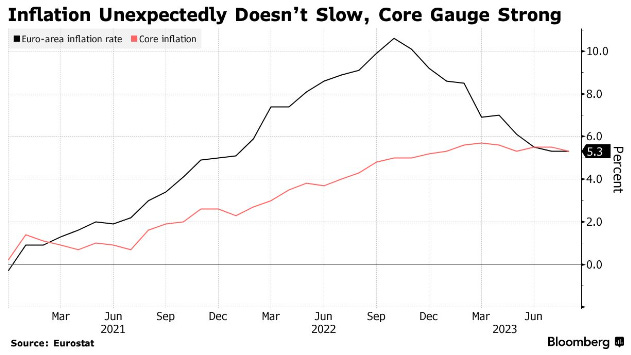 In zona euro, unde Banca Centrala este pe mana unei incompetente venite de la FMI, inflatia de baza creste de zor si ea se cam teme sa creasca dobanzile.