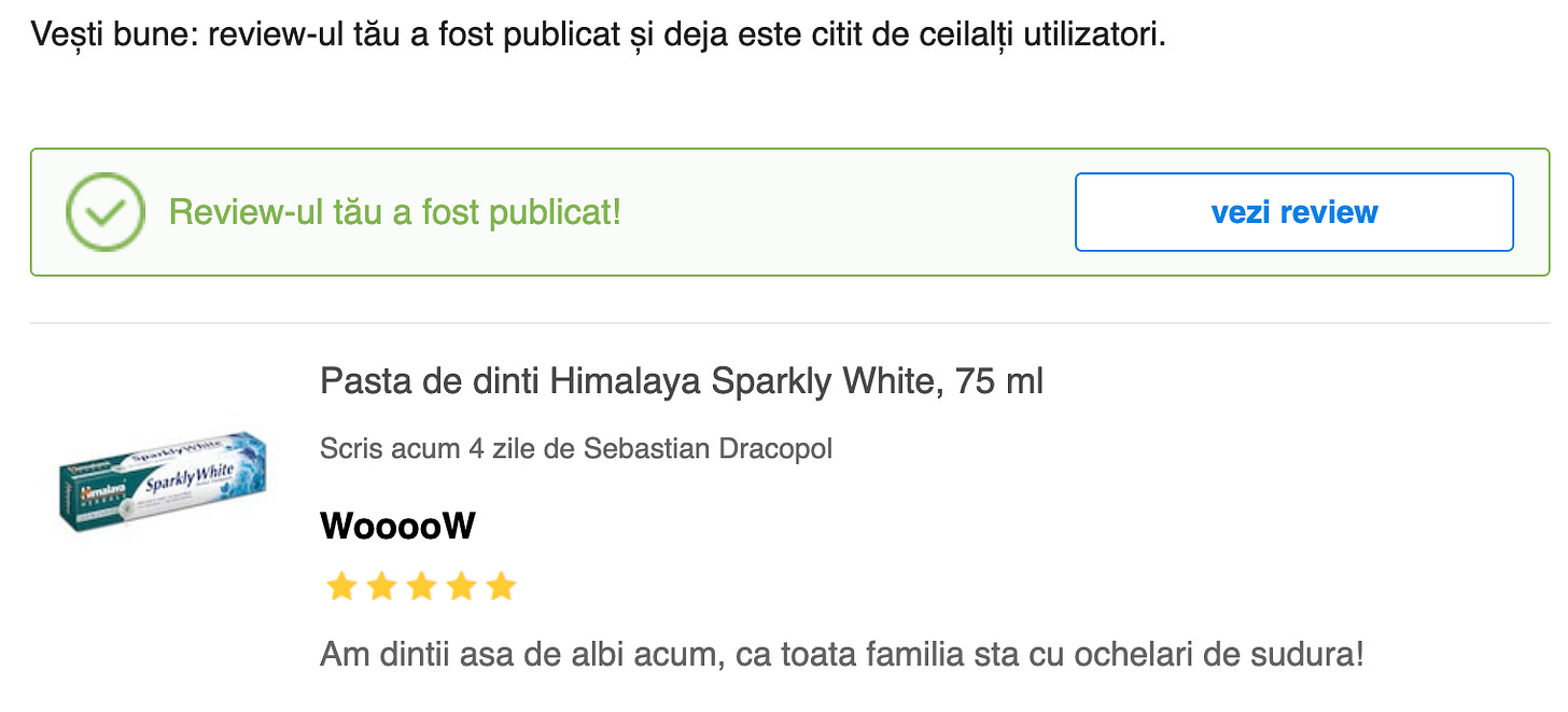 Emag mi-a mai aprobat doua review-uri, v-am zis de hobby-ul meu!
