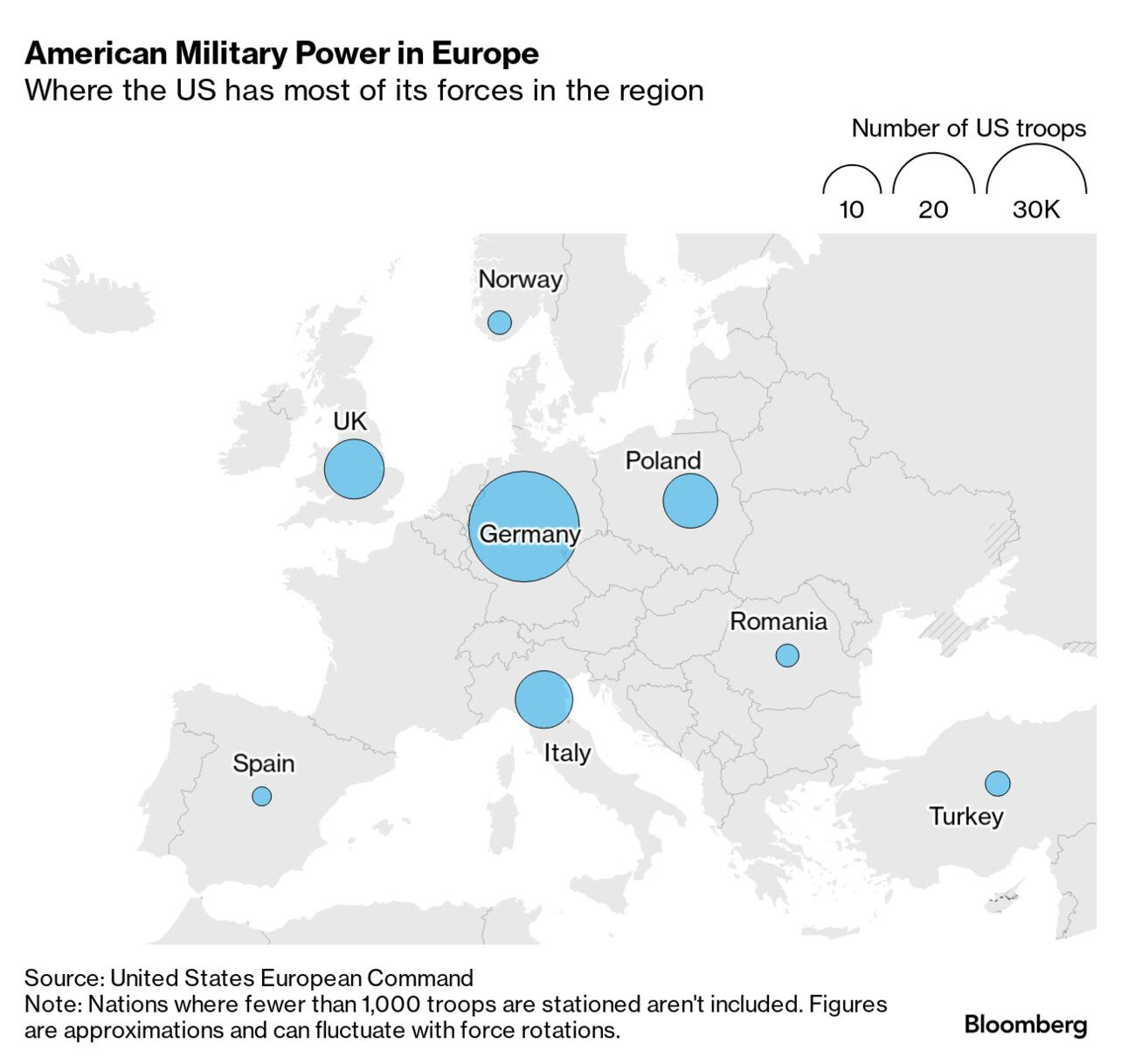 Harta trupelor americane din UE, ca e la moda subiectul: