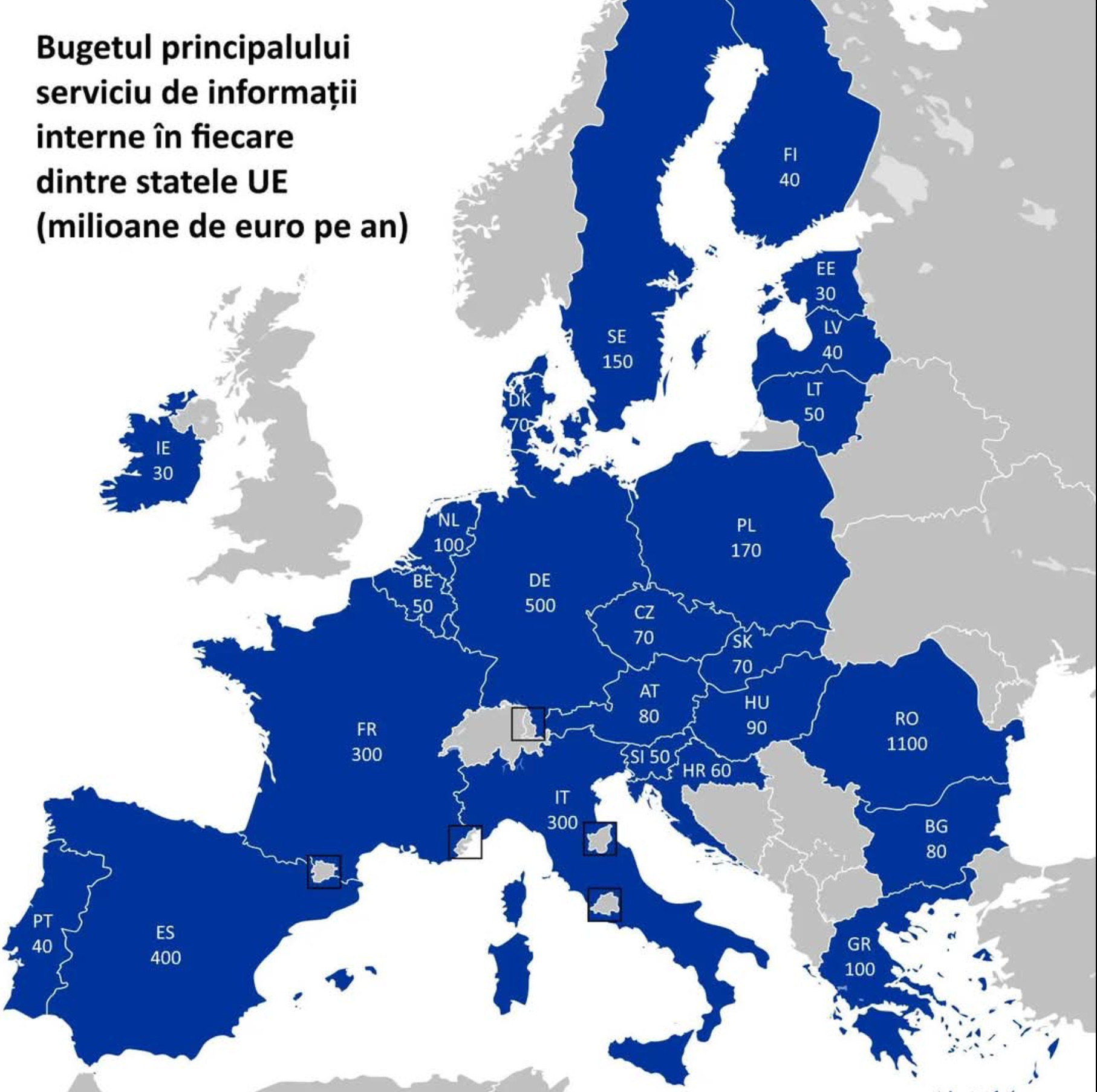 Bai dar, avem cele mai bine platite servicii secrete din Europa. Si nu ma refer per cap patrat de locuitor, ci efectiv ca buget, ia uitati-va aici: