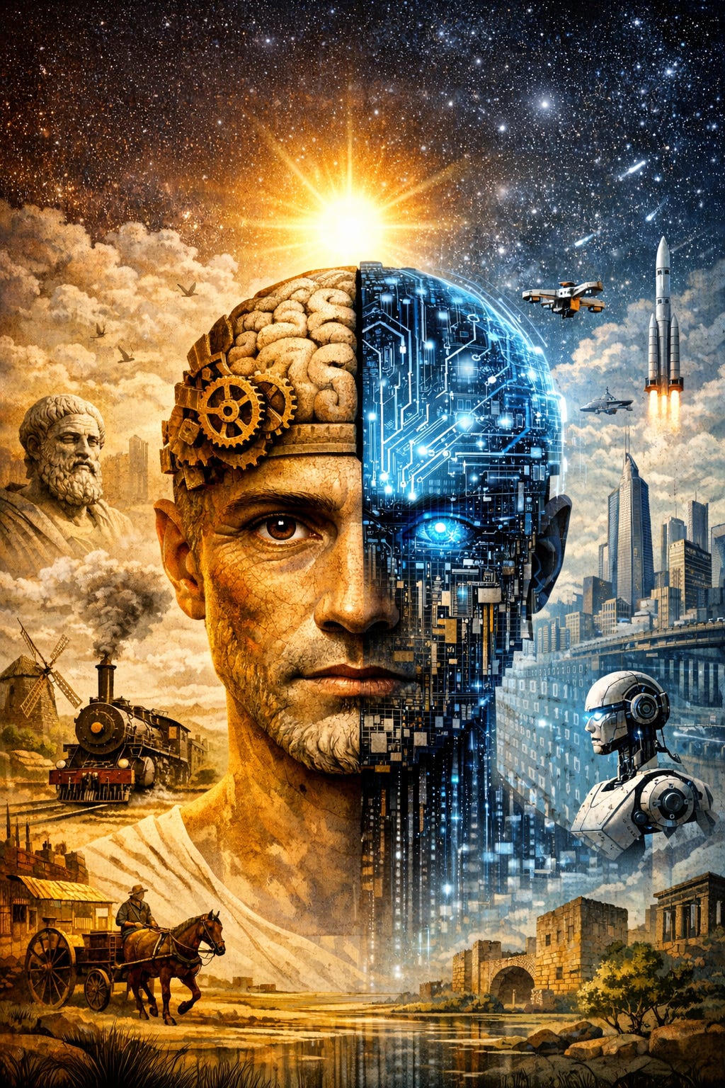 Timp de aproape 5.000 de ani de istorie scrisă, omul a trăit într-o lume pe care, dacă o reduci la esențialul tehnologic, ai recunoaște-o imediat: muncă fizică, transport lent, producție locală, noapte reală, boli frecvente, hrană sezonieră, informație rară, comunicație lentă, memorie fragilă. Un țăran roman, unul medieval și unul din 1700 ar înțelege destul de repede viața celuilalt. Ar avea diferențe de limbă, religie, stăpâni și unelte, dar ritmul de bază al existenței le-ar fi familiar. Aceeasi gradina zoologica.