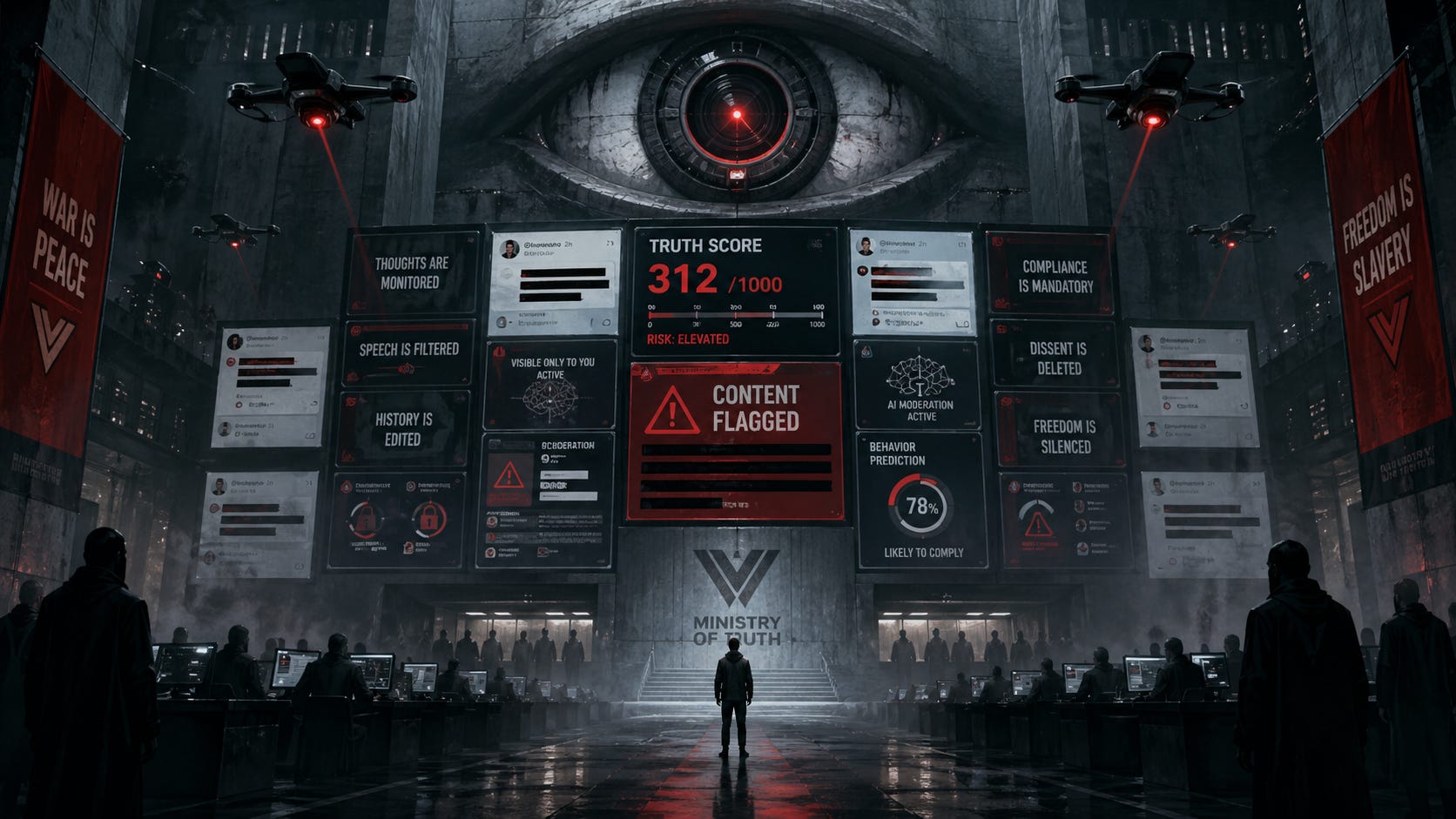 Asta este partea orwelliană. Nu imaginea brutală a unui cenzor care taie cu creionul roșu. Ci o platformă curată, europeană, modernă, care vorbește despre binele comun în timp ce construiește mecanisme prin care discursul poate fi filtrat, clasificat și limitat automat.