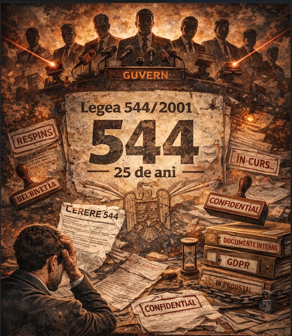 Legea 544/2001 privind liberul acces la informațiile de interes public are 25 de ani. Pe hârtie, e una dintre cele mai bune legi din România — simplă, clară, cu termene scurte și sancțiuni pentru funcționarii care refuză. În practică, e o glumă proastă. Sau mai exact, e o armă pe care statul a învățat s-o folosească împotriva ta, nu pentru tine.