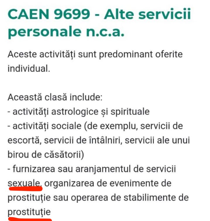 Ah si m-a distrat ieri teribil, ca a aparut un Cod CAEN pentru curve. Dar prostitutia e interzisa, asa ca ma intreb, e pentru politicieni??