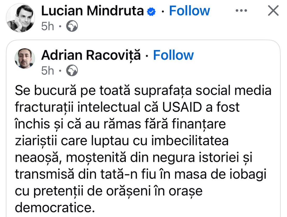 Dar serios, nu e singurul. Si influencerul tomantic, eroul babelor pensionare ( nu Tudor Chirila mai ) domnul Mindruta e cam ofticat vad. Cica baietii astia platiti de la USAID ne aduceau lumina in tara si erau independenti: